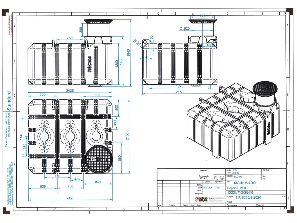 Nádrž RoCube je určená na zakopanie do zeme a predovšetkým na uskladnenie vody, ale aj iných tekutín. Nádrž môžeme použiť aj na žumpu. Je vyrobená pomocou rotačnej metódy ako odliatok z nového granulátu polyetylénu (PE). Je určená na zakopanie do zeme. Nádrž na vodu má dlhú životnosť a vydrží aj extrémne podmienky (teplo, zimu, dážď, sneh, vietor a podobne).