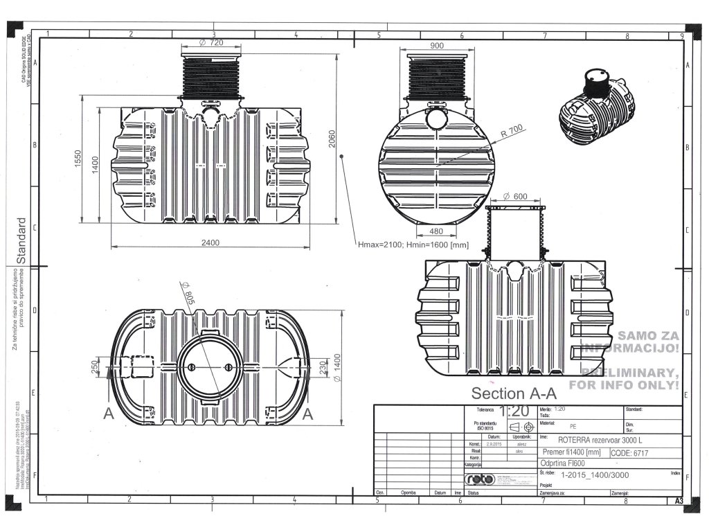 Nádrž Roterra je určená na zakopanie do zeme a predovšetkým na uskladnenie vody, ale aj iných tekutín. Nádrž môžeme použiť aj na žumpu. Je vyrobená pomocou rotačnej metódy ako odliatok z nového granulátu polyetylénu (PE). Dodávané s teleskopickým nadstavcom a poklopom s nosnosťou do 200 kg. Je určená na zakopanie do zeme, pričom zakopať ju je možné kdekoľvek. Nádrž na vodu má dlhú životnosť a vydrží aj extrémne podmienky (teplo, zimu, dážď, sneh, vietor a podobne).