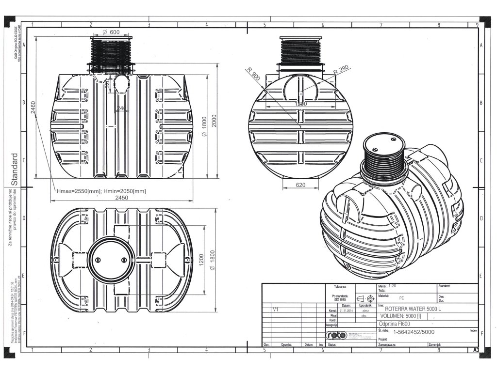 Nádrž Roterra je určená na zakopanie do zeme a predovšetkým na uskladnenie vody, ale aj iných tekutín. Nádrž môžeme použiť aj na žumpu. Je vyrobená pomocou rotačnej metódy ako odliatok z nového granulátu polyetylénu (PE). Dodávané s teleskopickým nadstavcom a poklopom s nosnosťou do 200 kg. Je určená na zakopanie do zeme, pričom zakopať ju je možné kdekoľvek. Nádrž na vodu má dlhú životnosť a vydrží aj extrémne podmienky (teplo, zimu, dážď, sneh, vietor a podobne). Vlastnosti produktu: